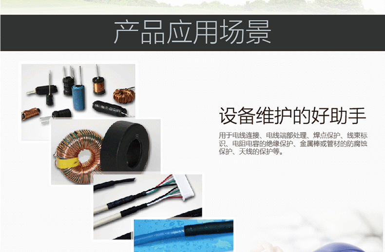 收缩性能:收缩率2:1,起始收缩温度70℃(超薄型)/84℃(正常),完全收缩温度125℃;使用强制鼓风式恒温烘箱,温度达设定值后需保持3分钟,确保收缩到位,收缩后冷却定型,形成防水、防尘、防锈、防触电的防护层。