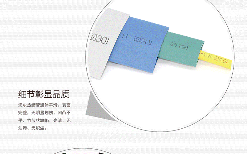3 特殊说明:黄色和白色套管的阻燃性能有待改善,使用时需结合场景的阻燃要求谨慎选择;需根据被保护物的尺寸,选择合适内径和壁厚的套管,确保收缩后紧密贴合