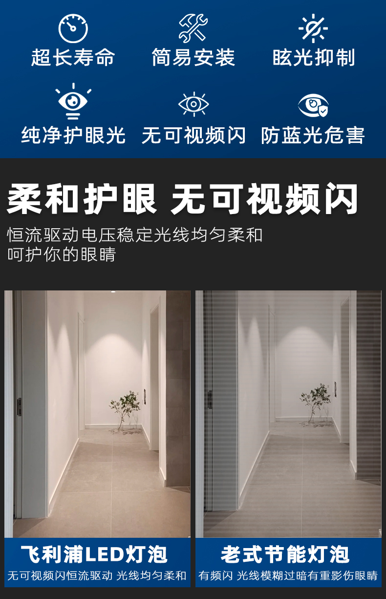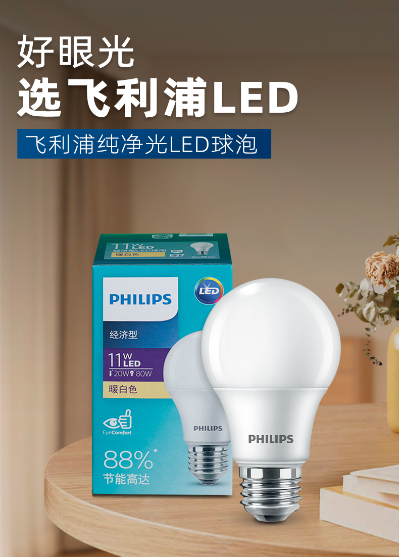 节能长寿:经济款定位,节能效率高达88%,显著降低用电成本;具备超长使用寿命,减少频繁更换的人力与时间成本;安装简易,旋入E27螺口灯具即可完成操作。