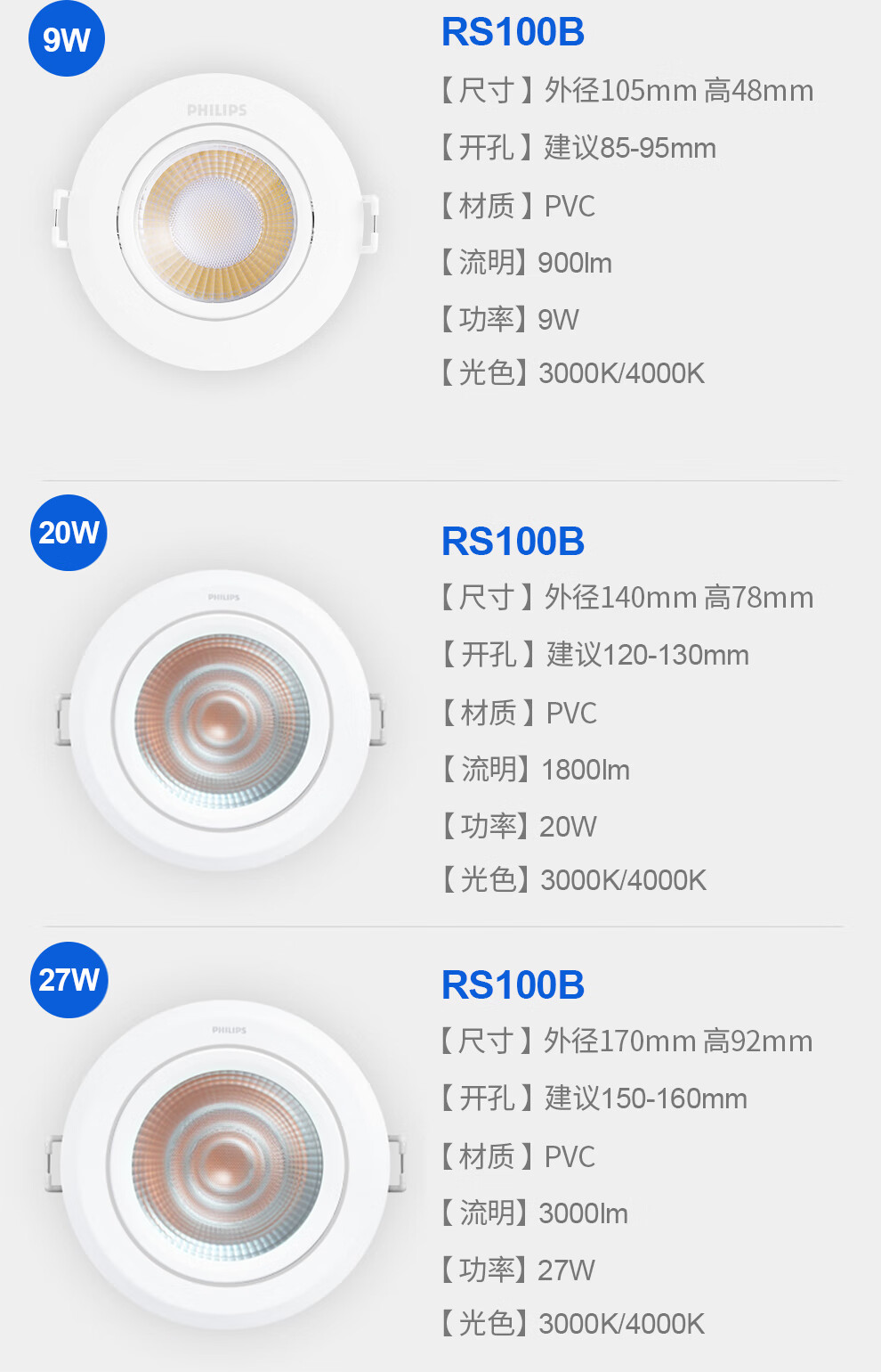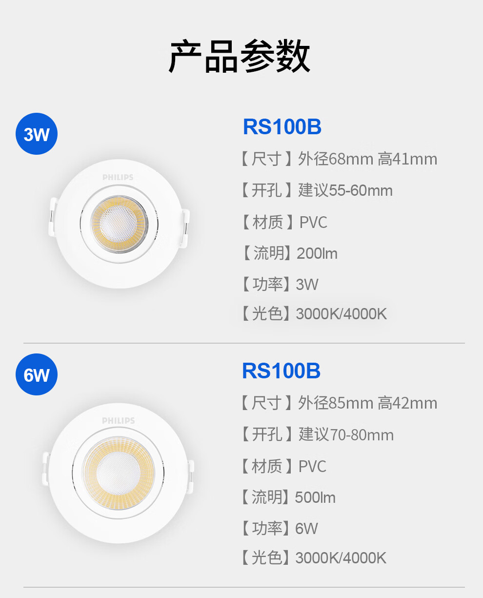 飞利浦射灯3W(开孔55-60)暖白4000K RS100 24D