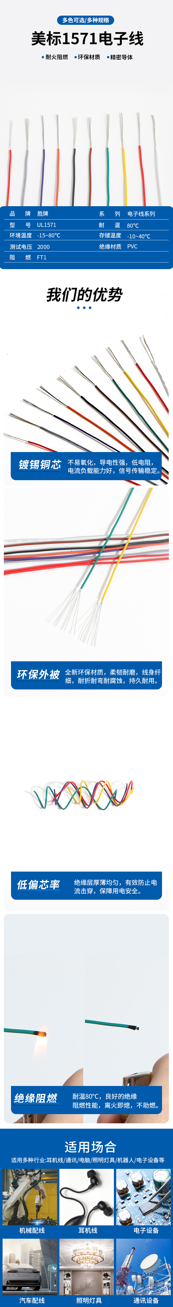 TRIUMPH CABLE(胜牌) UL1571#26AWG Blue镀锡铜PVC电子线具有以下特点: