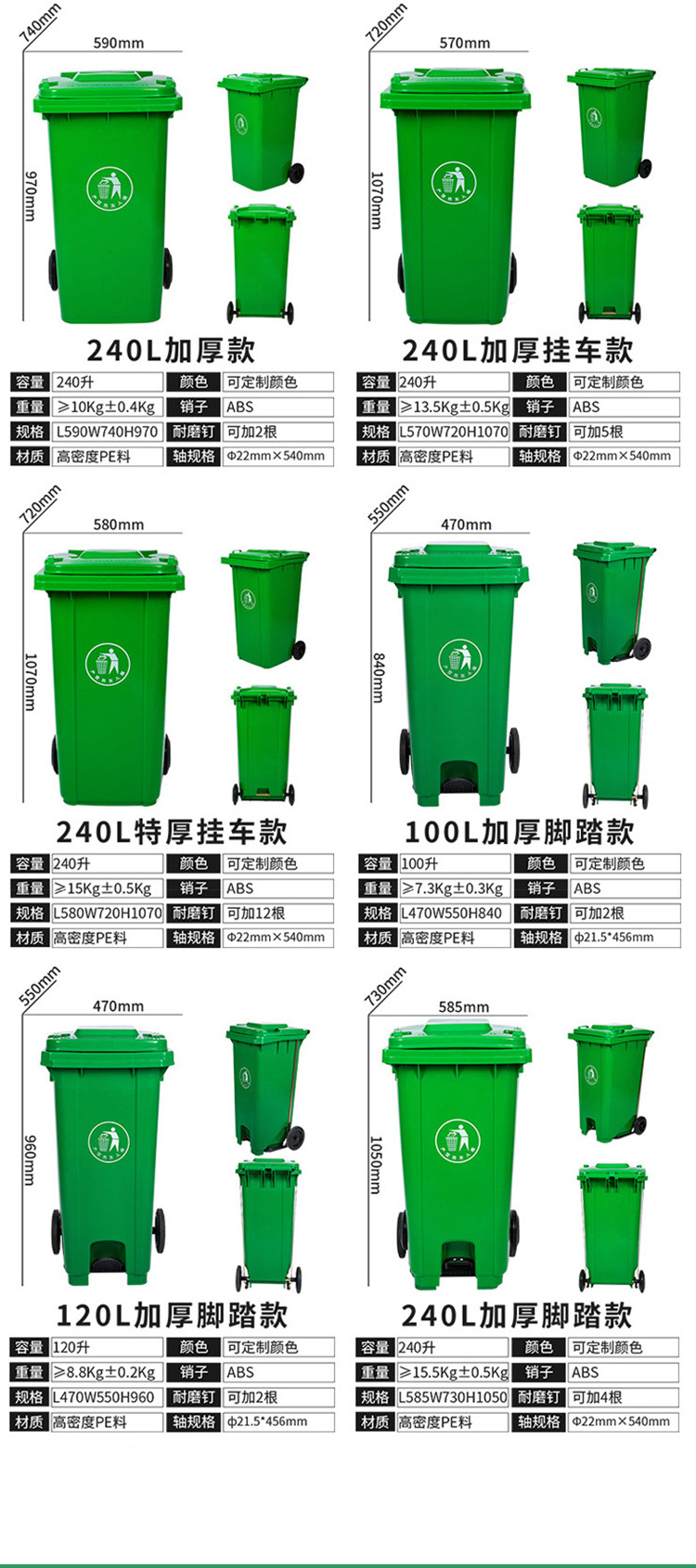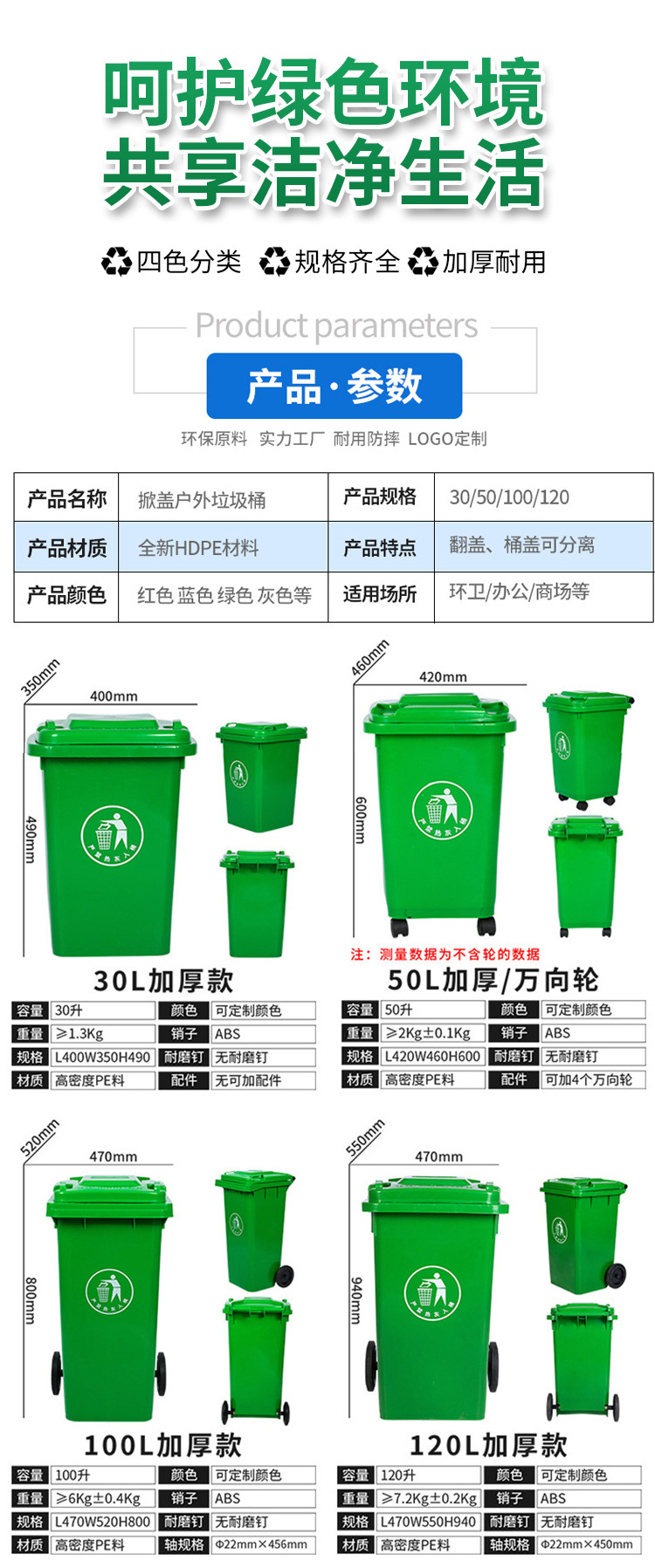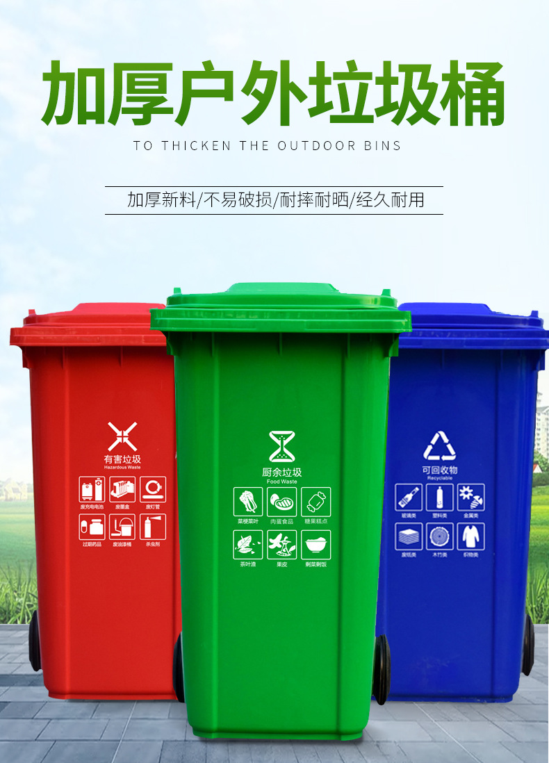 LIHAO(力豪)掀盖户外垃圾桶分类带盖加厚塑料桶LH-100升H掀盖LJT-X-100L-H-4灰色