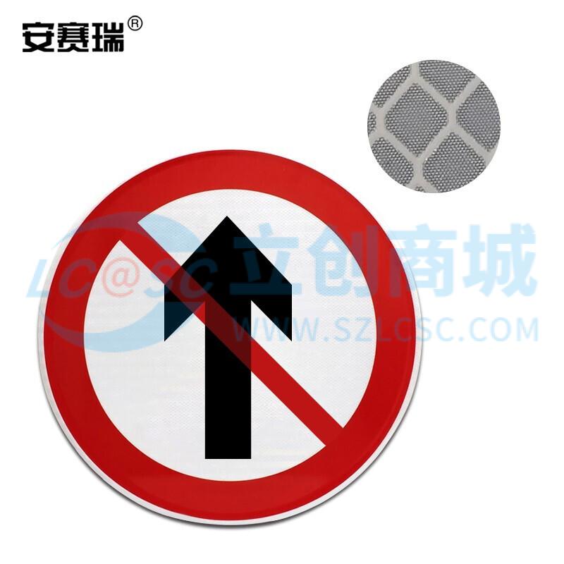 安赛瑞 反光交通安全标牌(禁止直行)φ60cm 道路安全标志牌 11033