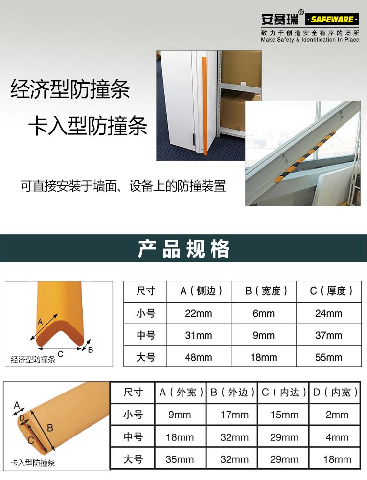 安赛瑞 卡入型中号防撞条(黄/黑)防碰撞棉 发泡防撞条 18×32×900mm 11693