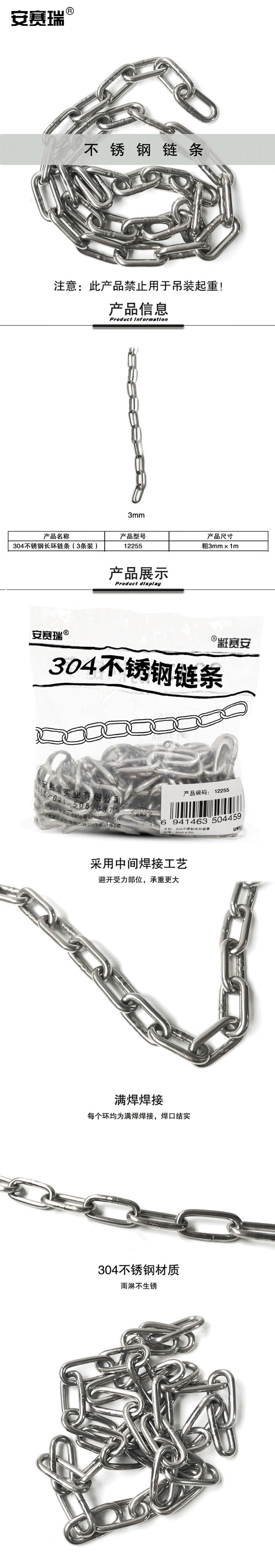 安赛瑞 304不锈钢链条 不锈钢细链条 304不锈钢铁链 金属链条(3条装)φ3mm*1m 12255