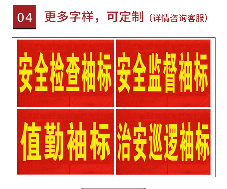 安赛瑞 安全检查袖标 执勤检查治安巡逻 管理红袖套 可订做 配10个别针 10个装宽14cm长21cm 12432
