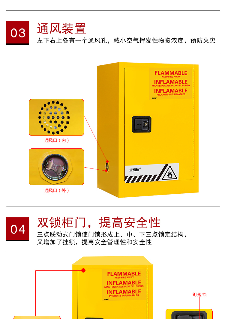 7 明显标识:柜体表面有醒目的“FLAMMABLE”标识,提醒人员注意安全。