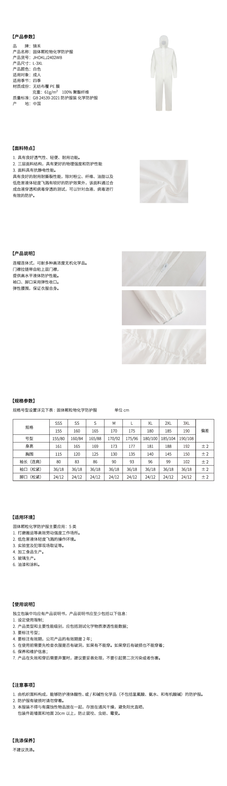 符合GB 24539-2021《防护服装化学防护服》质量标准,防护性能有可靠依据