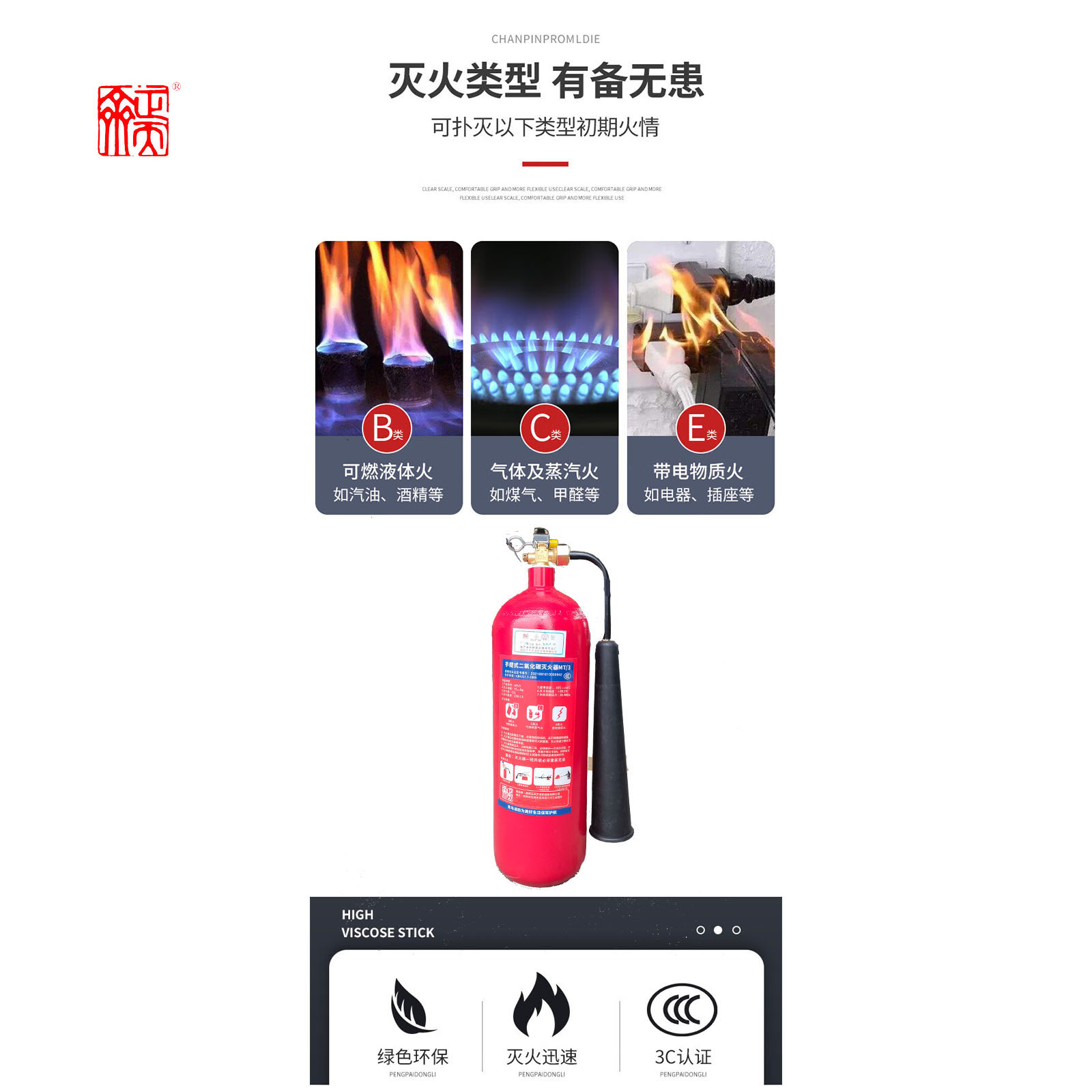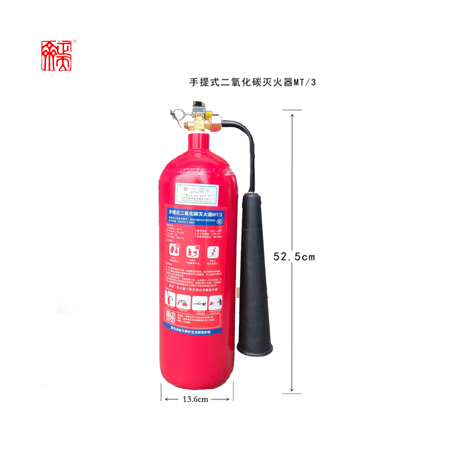ZTQ(正天齐)MT/3手提式二氧化碳灭火器车载家用消防器材3公斤