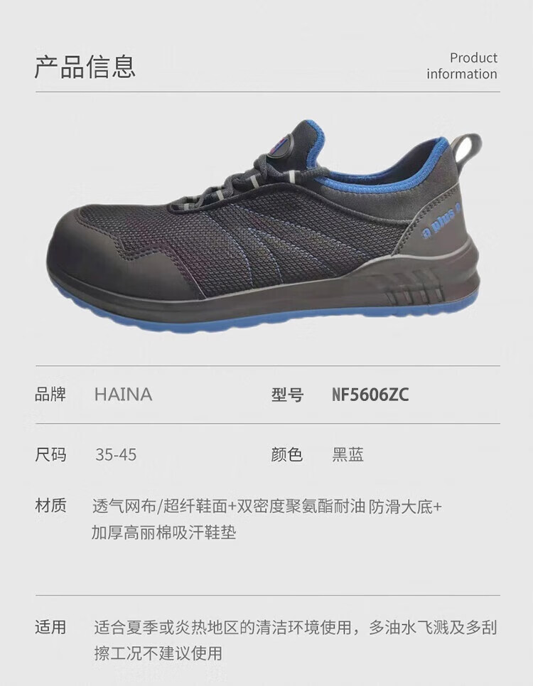 海纳(HAINA) NF5606ZC 登山鞋 工作鞋 适合日常工作 户外穿着 黑蓝 38码