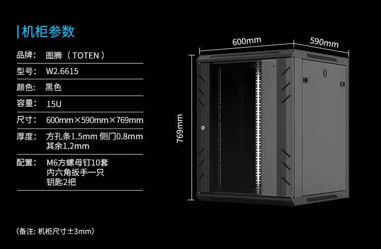 图腾(TOTEN)W2.6615 网络机柜 19英寸国际标准机柜 15U 挂墙机柜 600宽590宽769高
