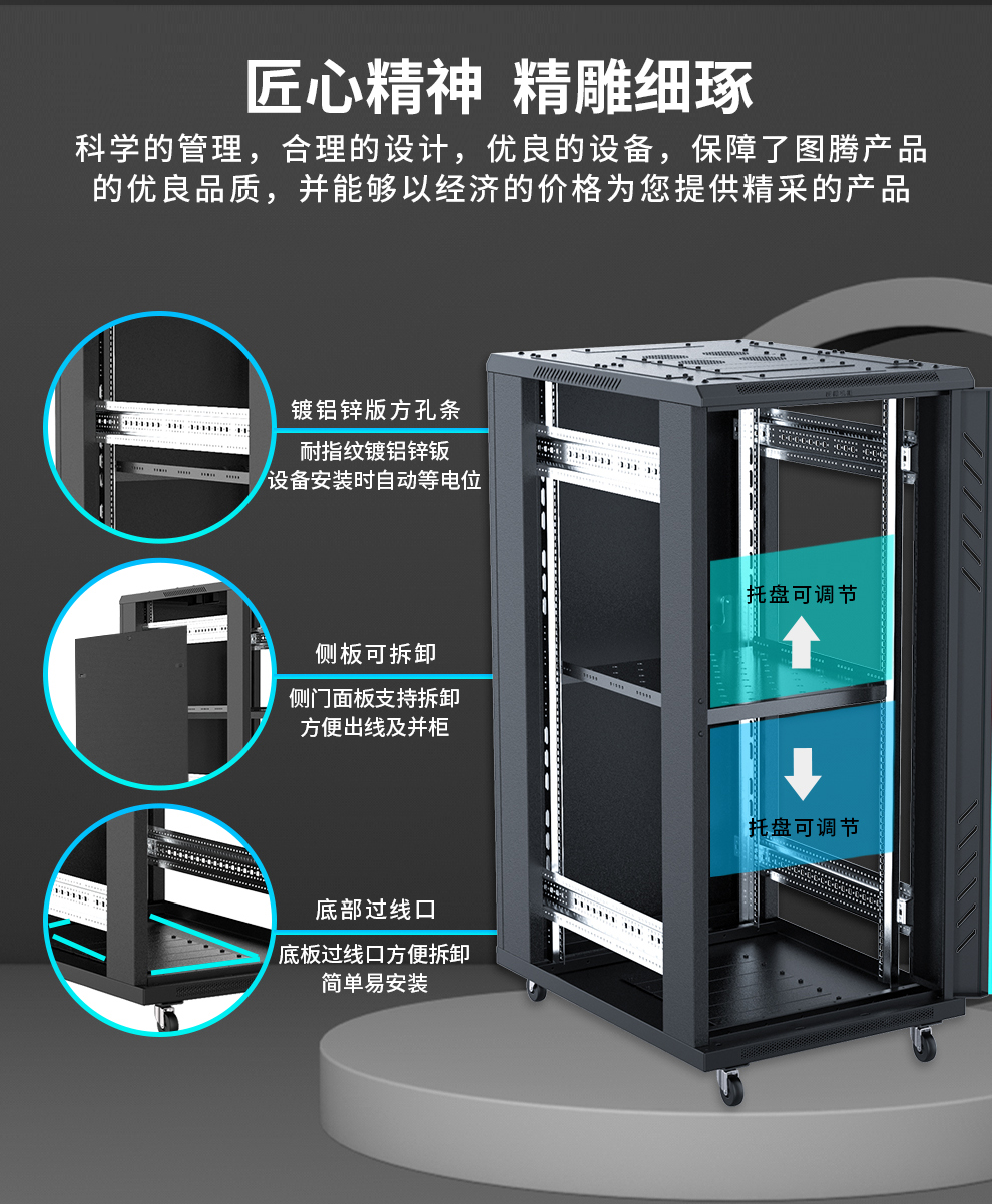 **布线管理**:合理规划布线路径,利用底部过线口和顶部布线口,避免线路杂乱,影响散热和维护。