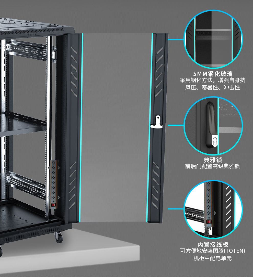 **环境要求**:机柜应放置在干燥、无尘、温度适宜的环境中,避免极端温度和湿度的影响。
