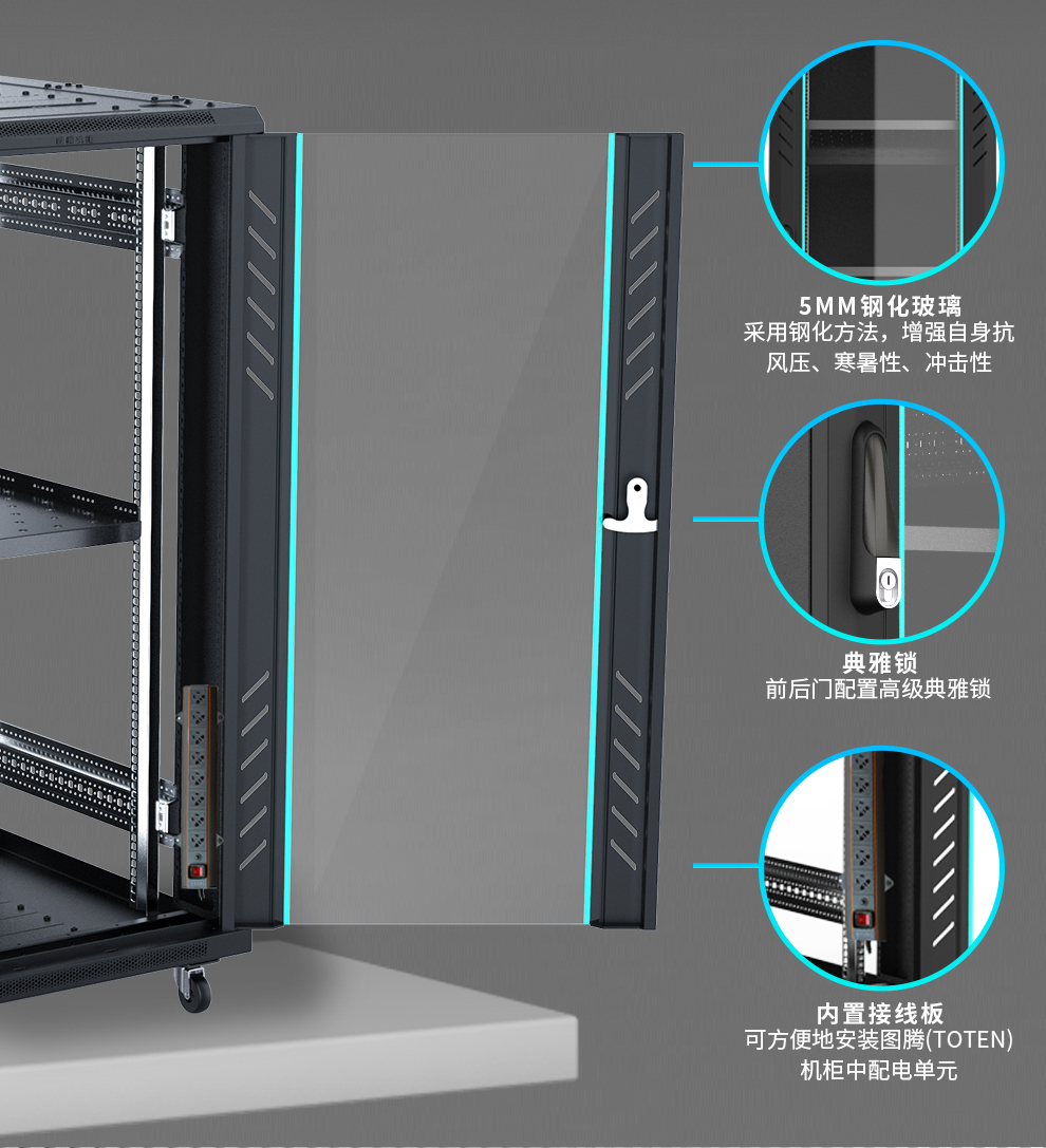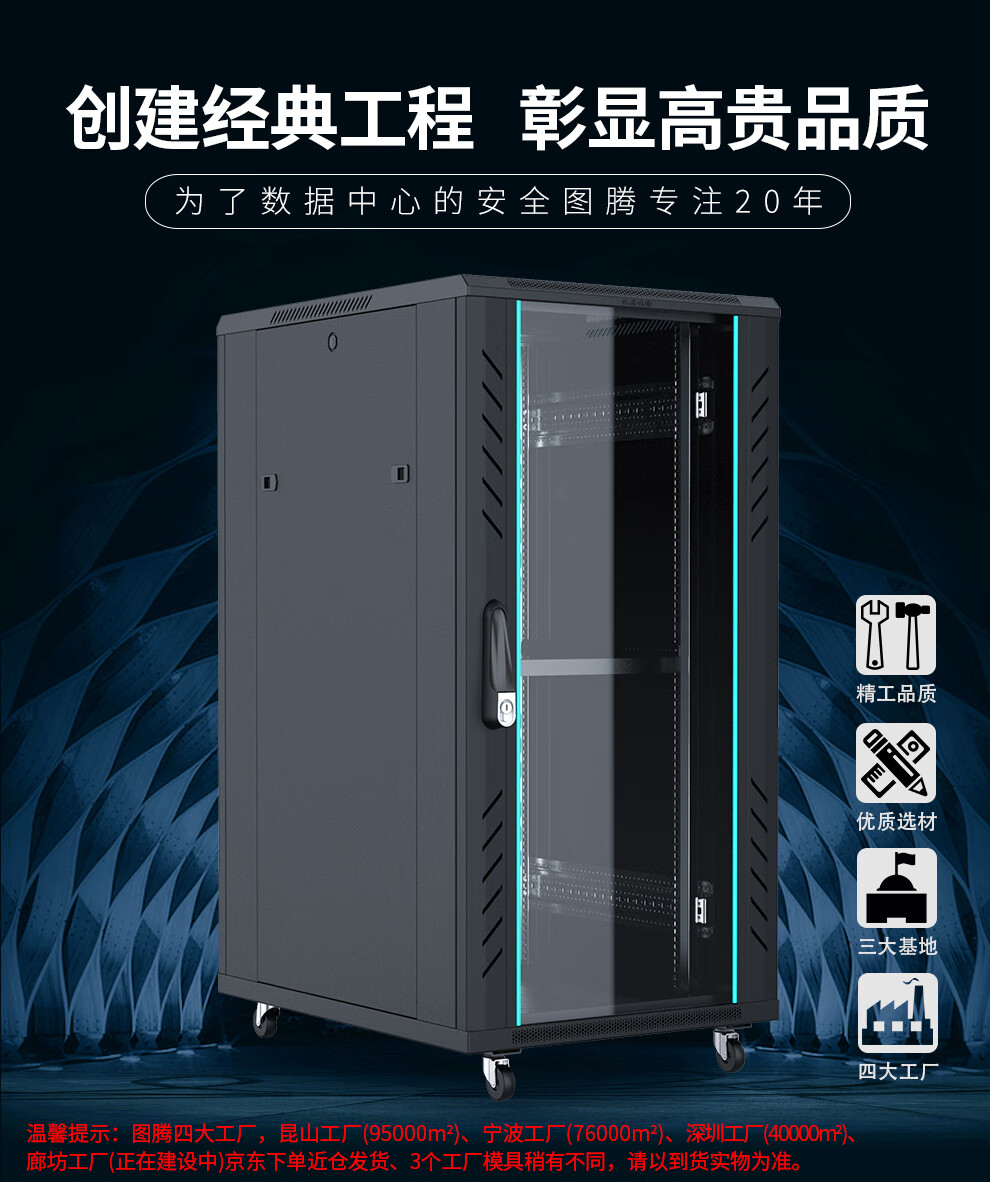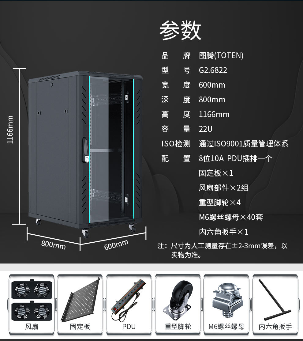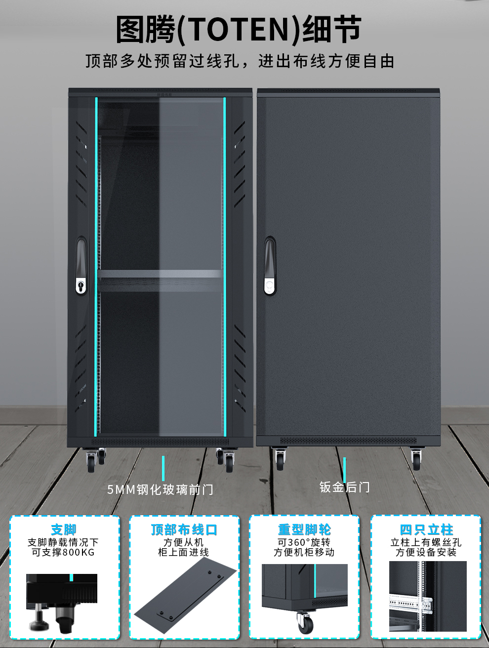 图腾(TOTEN)G2.6822 网络小机柜 加厚机柜 交换机机柜 UPS电源 19英寸机架机柜 黑色 22U1.2米