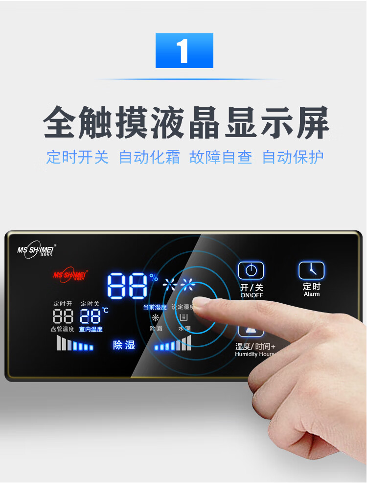 4 智能操控系统:全触摸液晶显示屏,支持定时开关机、自动化霜、故障自查、断电记忆等功能