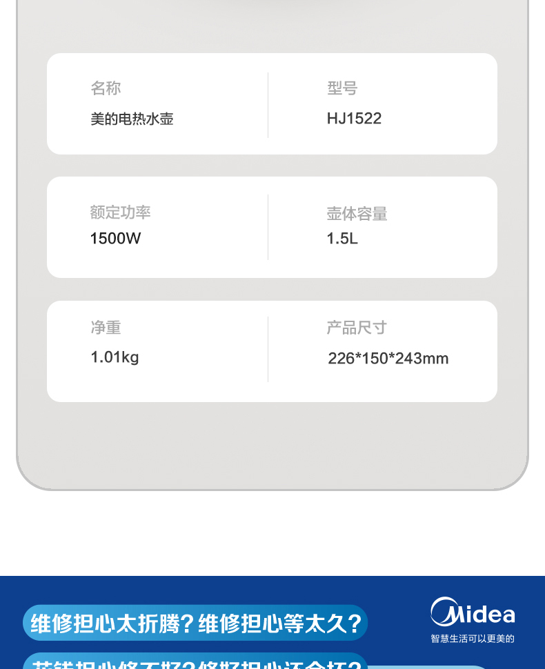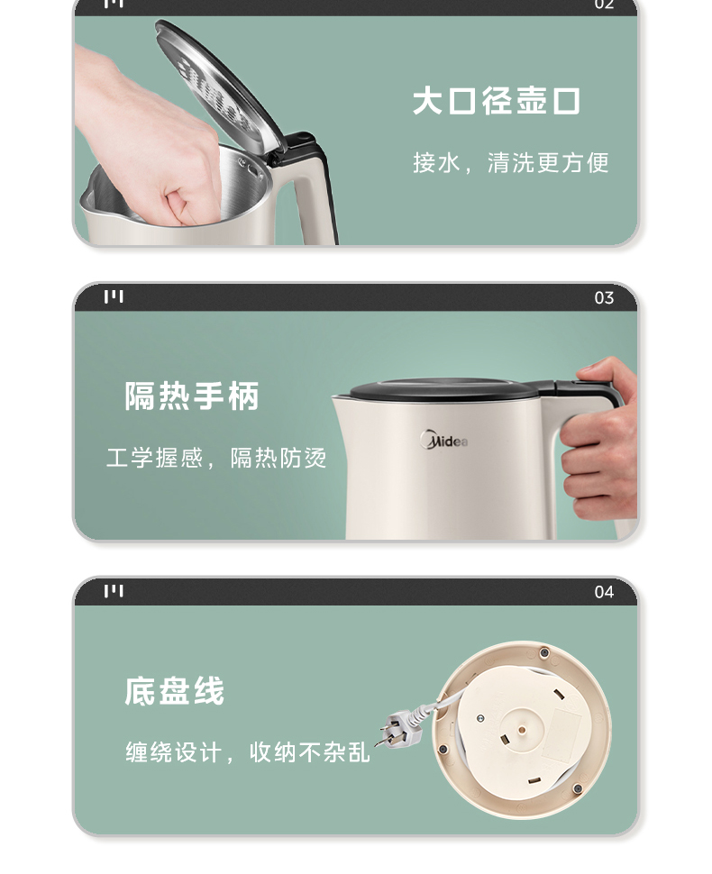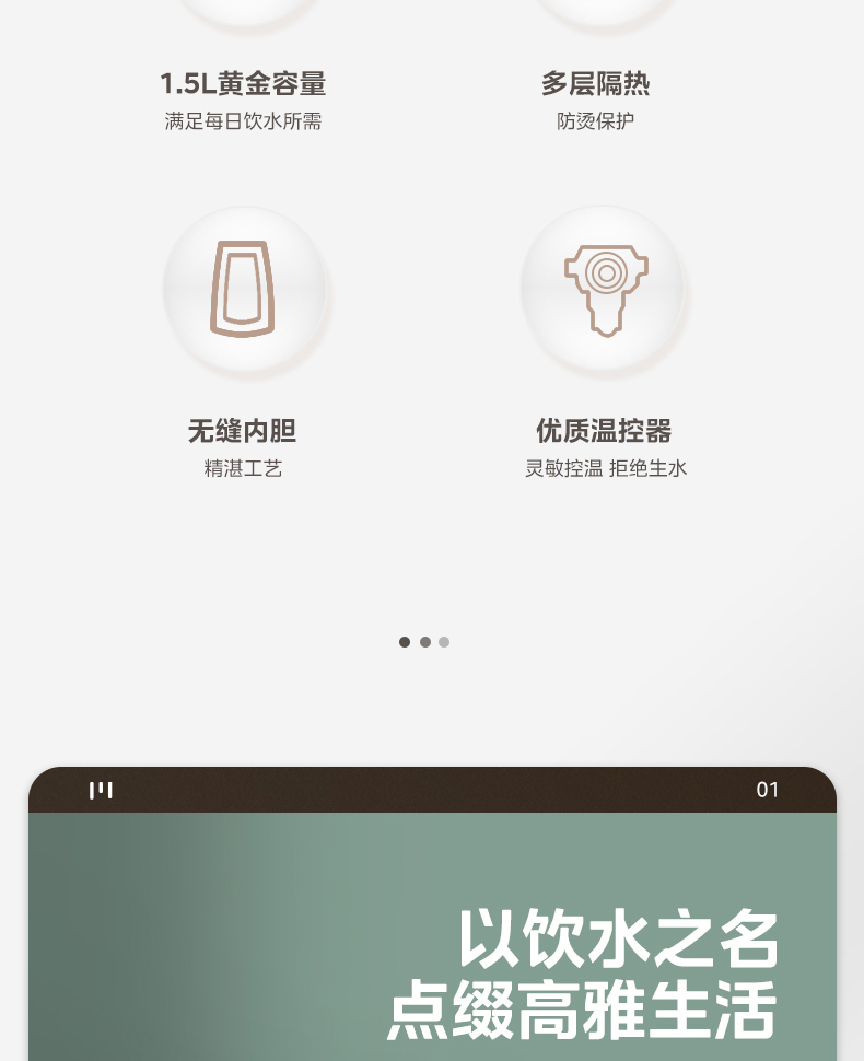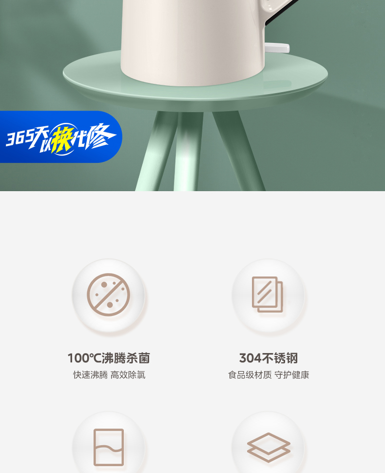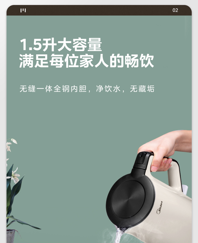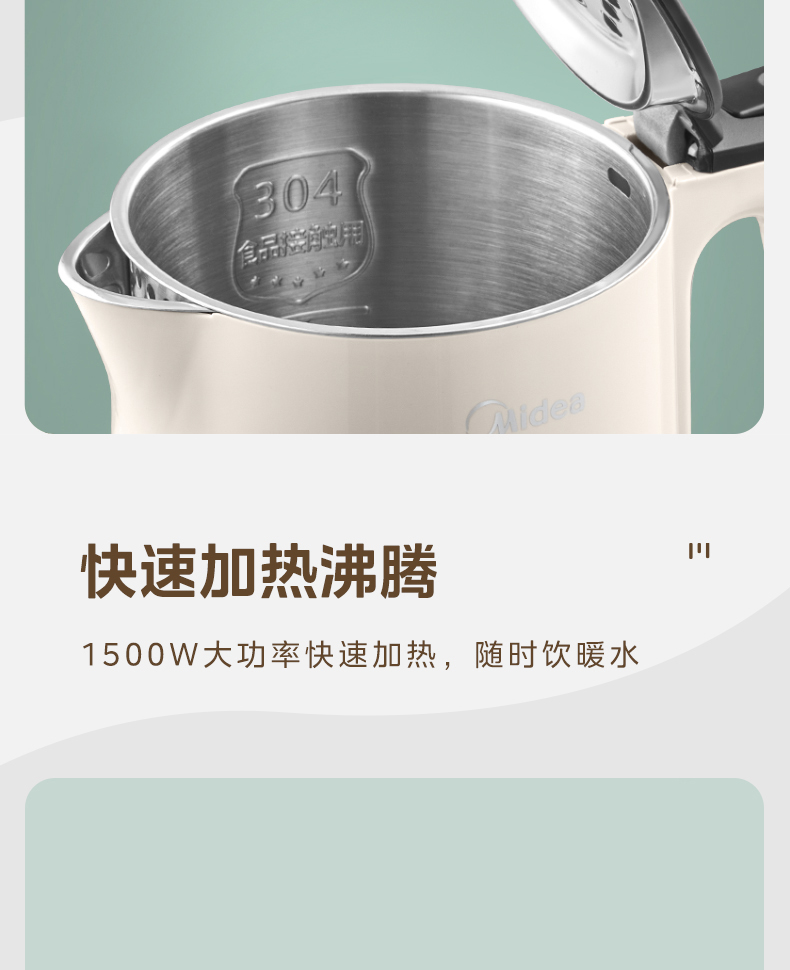 **1500W大功率快速加热**:短时间内将水加热至沸腾,满足快速饮水需求。