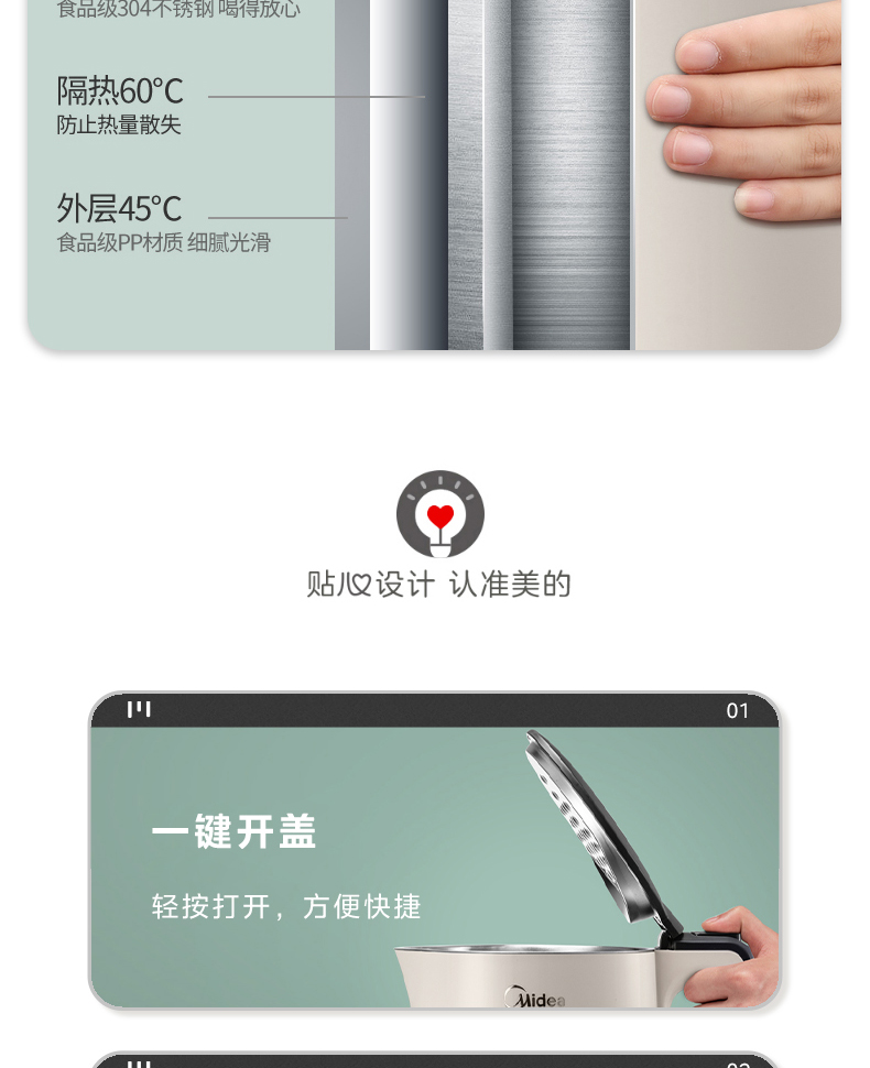 **双层隔热设计**:内外双层结构有效防止热量散失,即使在100℃高温下,外层温度仅45℃,触摸不烫手,安全可靠。