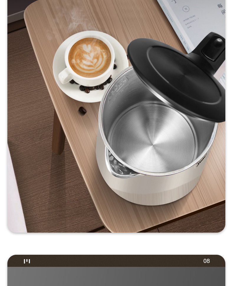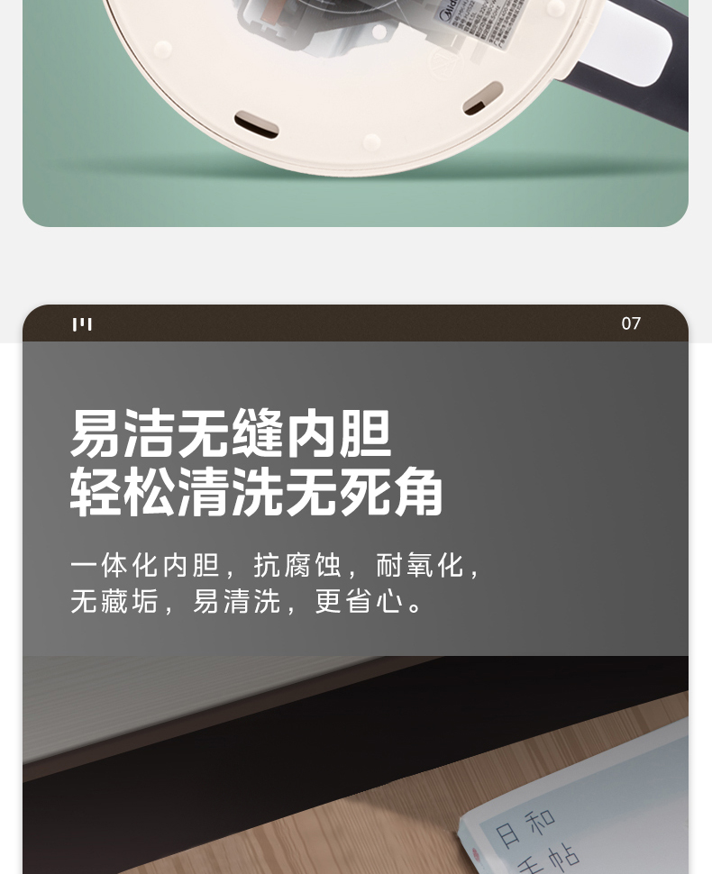 **无缝内胆设计**:一体化内胆,无藏垢,易清洗,抗腐蚀,耐氧化。
