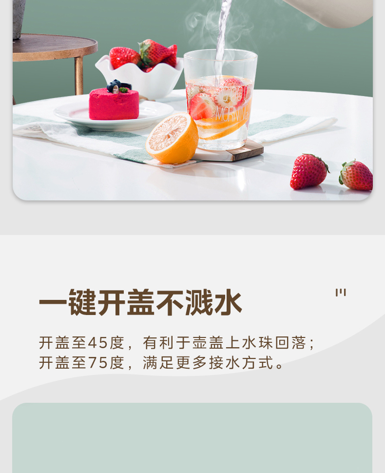 **一键开盖功能**:轻按即可打开,方便快捷,且设有防溅水设计,使用更舒心。