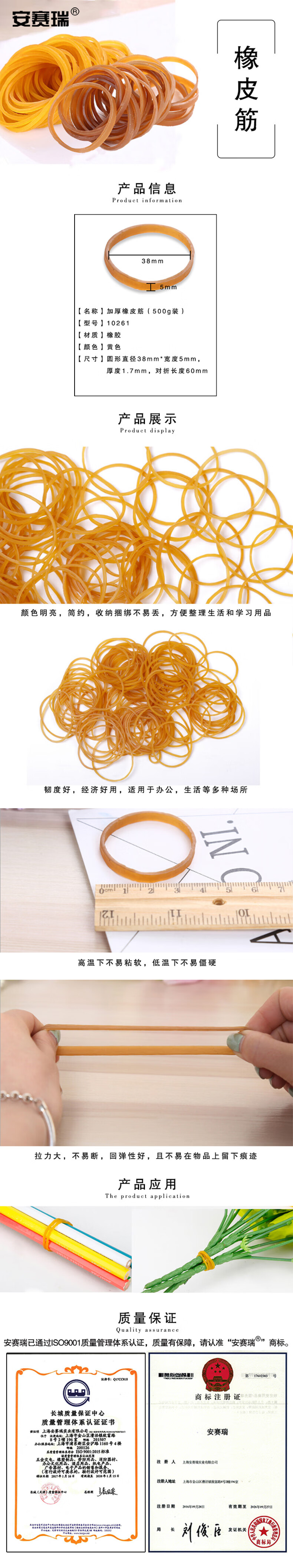 安赛瑞加宽加厚型捆扎橡皮筋(型号10261)具有以下特点: