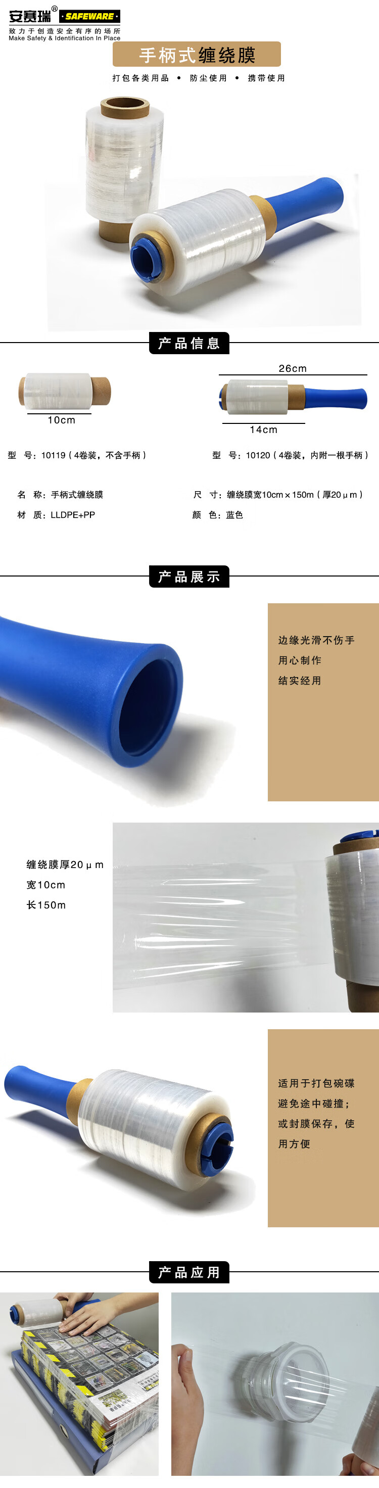 安赛瑞 缠绕膜 8cm×200m 净重1.1kg/卷 4卷 便携式带手柄缠绕膜 10120