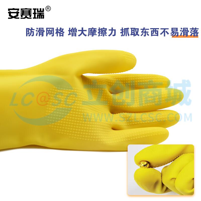 安赛瑞 乳胶手套 加厚牛筋耐磨保洁防水防污防油餐饮洗碗洗衣服胶皮手套 L码 10688