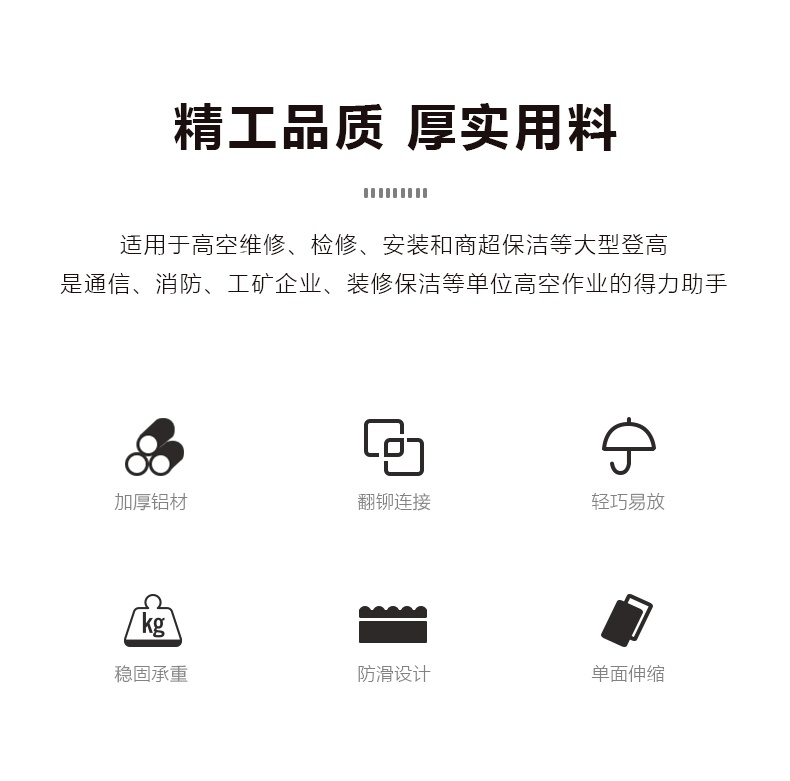 最大载重能力达150kg,满足多数登高作业的承重需求