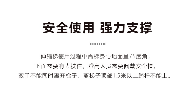 伸缩梯展开或收缩时,需确认挂钩完全锁定到位后再进行下一步操作,避免梯体滑落