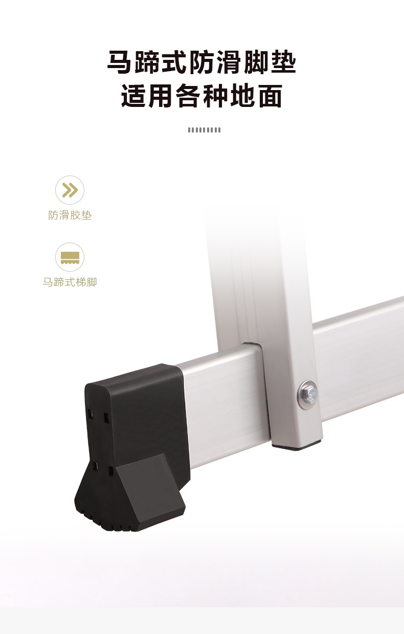 材质优质:整体采用高强度铝合金6005加厚铝材,确保梯子的坚固耐用和轻便易携。