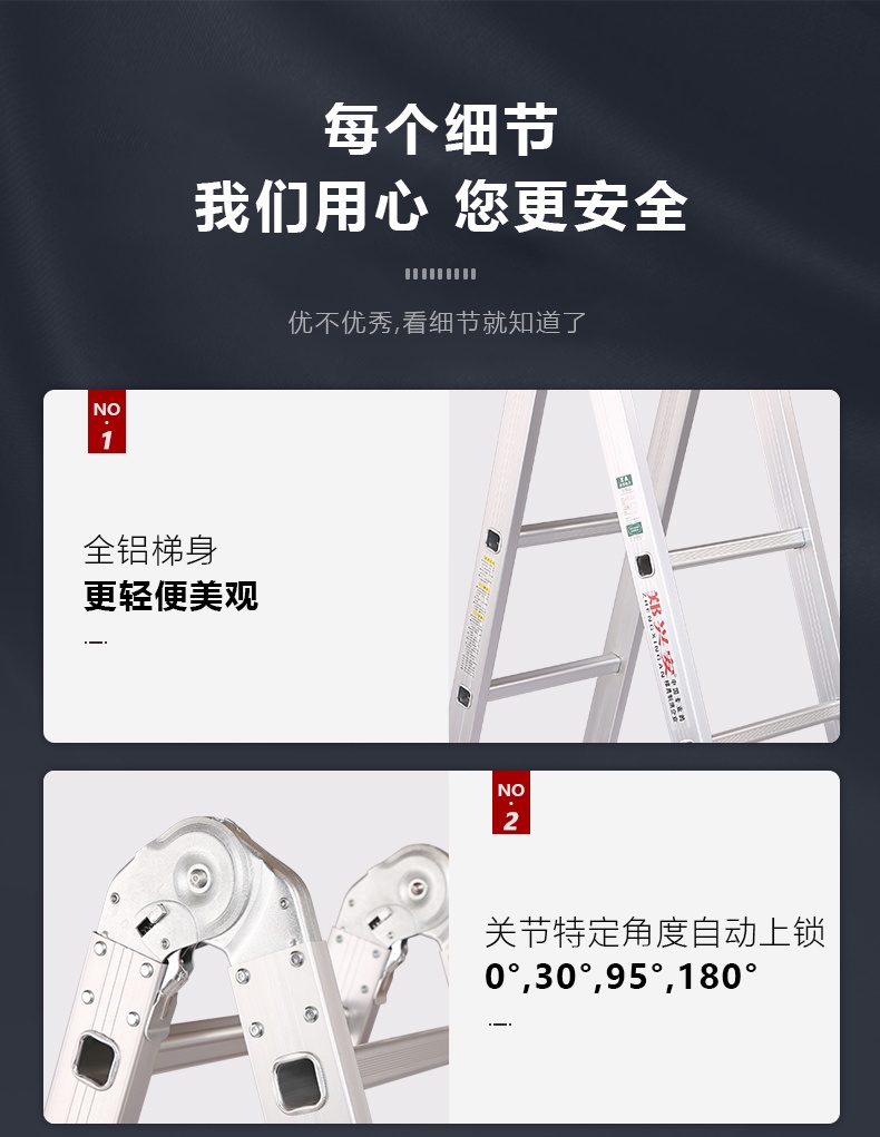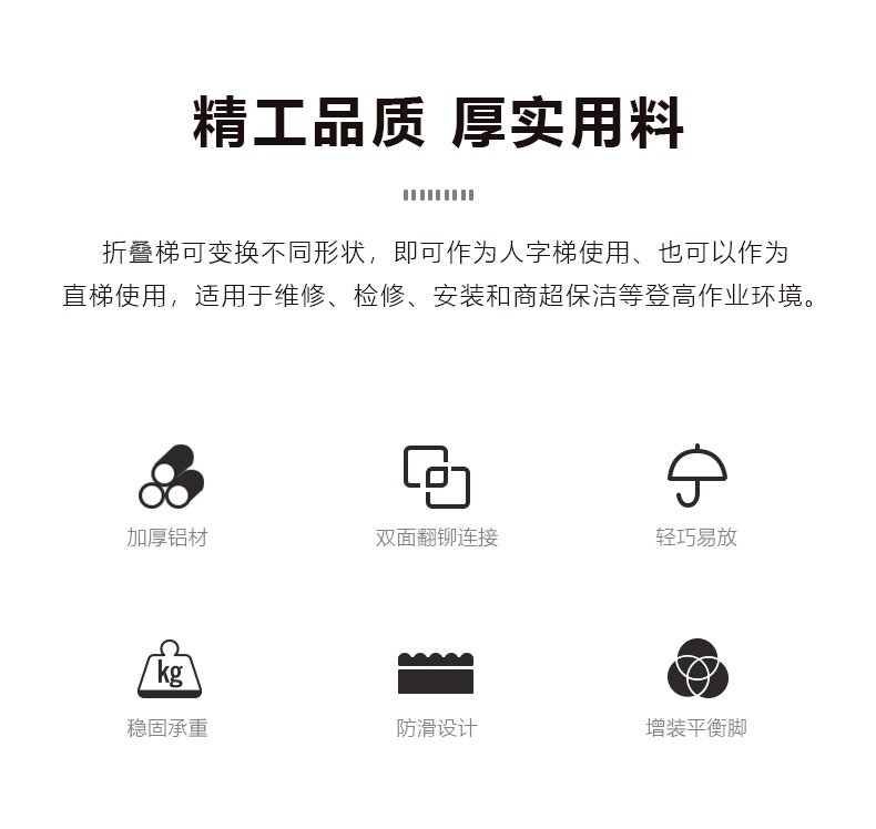 多功能使用:一梯两用,既可作为人字梯使用,也可展开为直梯,满足不同场景的需求。