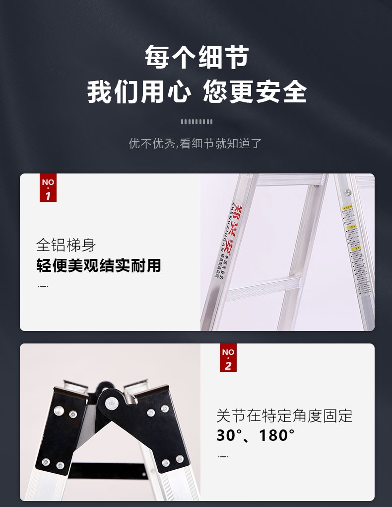 一梯两用,可灵活转换为人字梯和直梯使用,满足不同场景需求