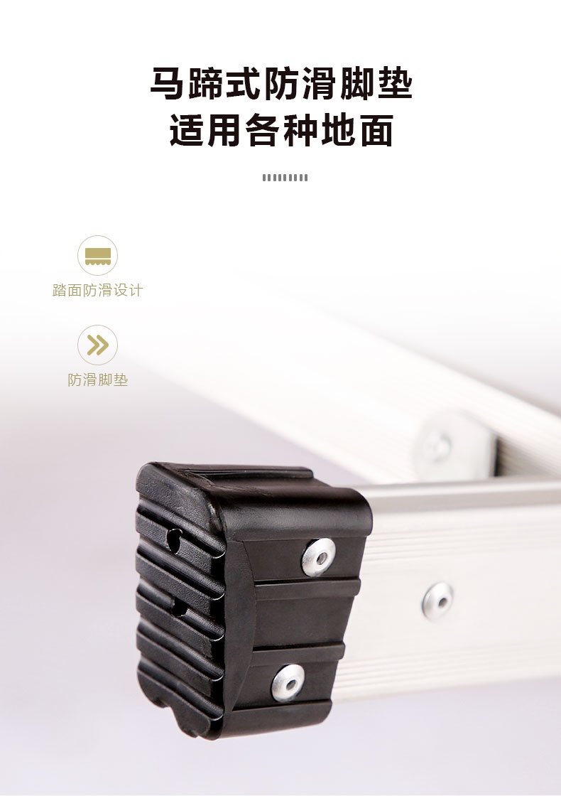 配备马蹄式防滑脚垫,适配多种地面类型,增强使用稳定性