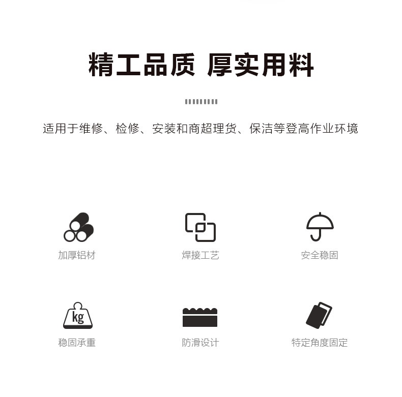 禁止超载使用(最大承重120kg),禁止站在梯子最顶端的踏板上作业