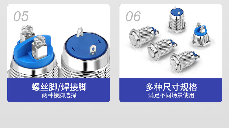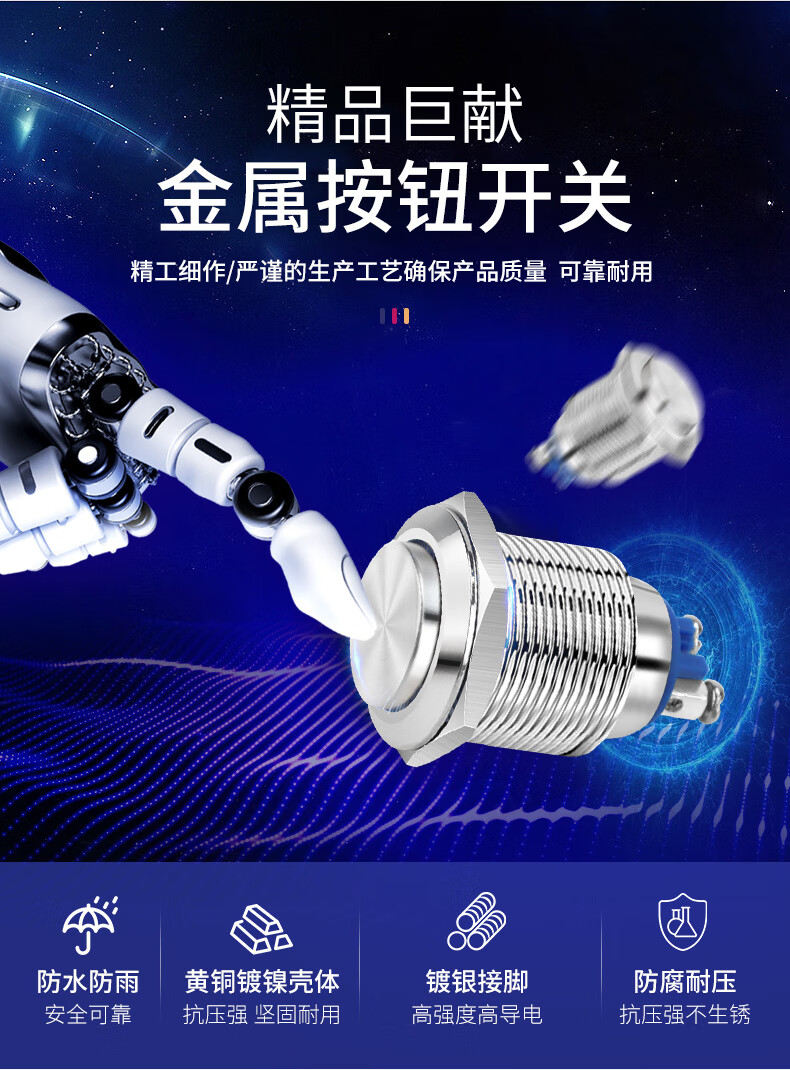 2件套汇君 22mm防水金属按钮开关高头平面弧面点动开关螺丝脚常开银触点 平面自锁