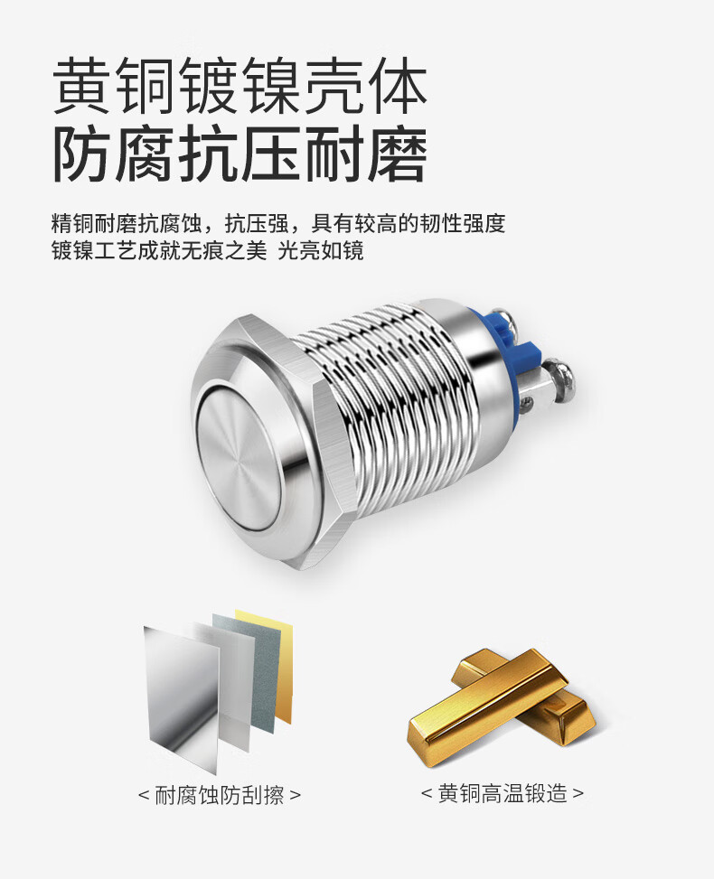 | 材质 | 黄铜镀镍外壳,加粗镀银触点 |