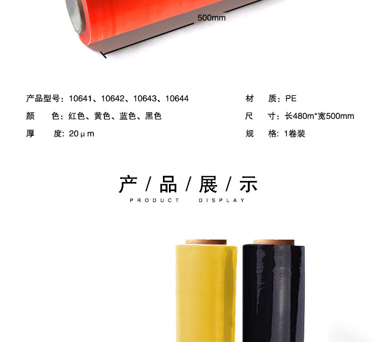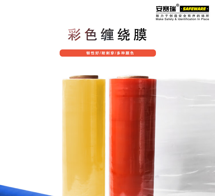 安赛瑞 缠绕膜 50cm×300m 净重3.5kg/卷 单卷 PE彩色物流打包膜 红色 10641