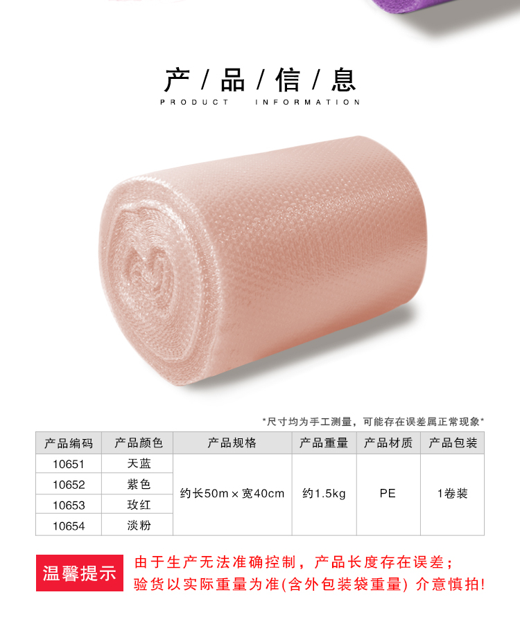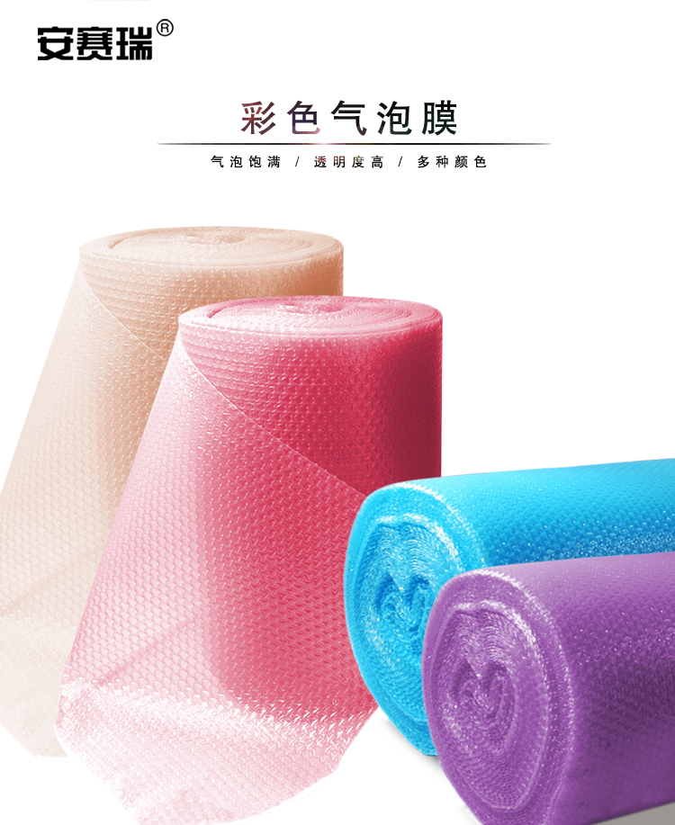 安赛瑞 彩色气泡膜 加厚彩色气泡膜 包装减震膜彩色泡泡膜 彩色气垫膜 宽度40cm 玫红色 10653