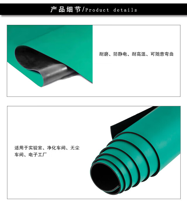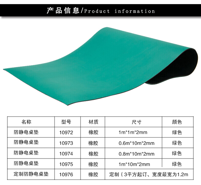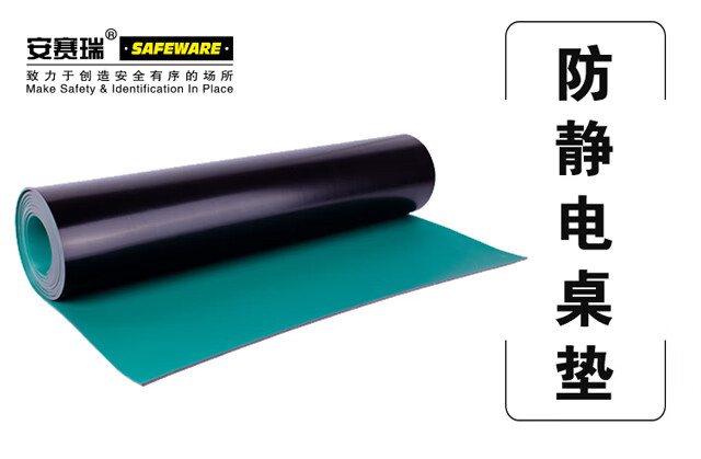 安赛瑞 橡胶防静电台垫桌垫 绿色 防静电胶皮桌垫 工作台防静电台垫 1m×10m×2mm 10975