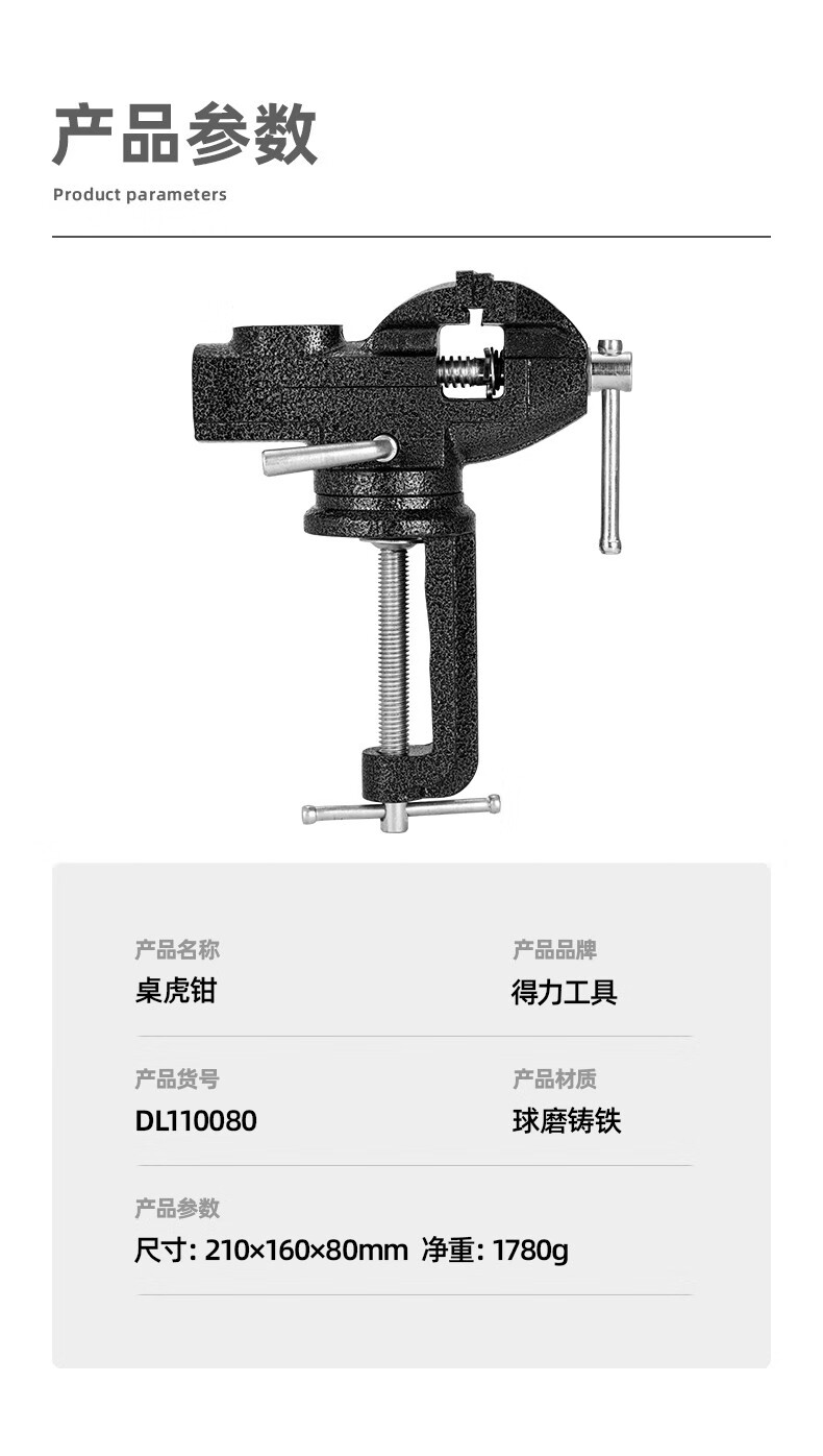 得力/deli 台虎钳虎钳平口钳台钳活动桌虎钳 桌虎钳80型 DL110080
