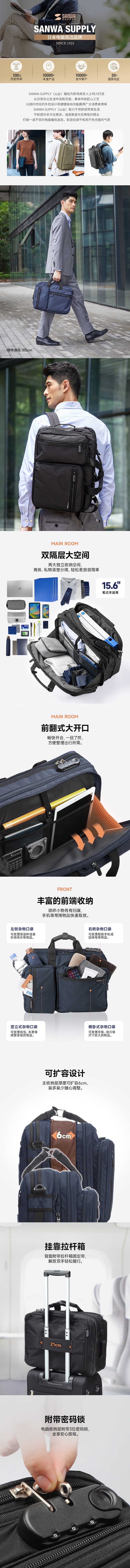 山业(SANWA SUPPLY)200-BAG048 经典3WAY电脑包 带扩展层附密码锁 15.6英寸 黑色(个)