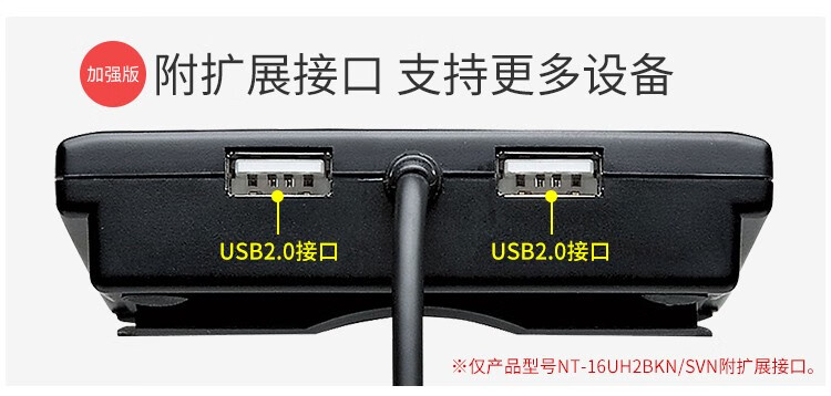 加强版型号(如NT-16UH2SVN)额外配备两个USB 2.0扩展接口,可用于连接鼠标、U盘或其他外设,扩展性强。