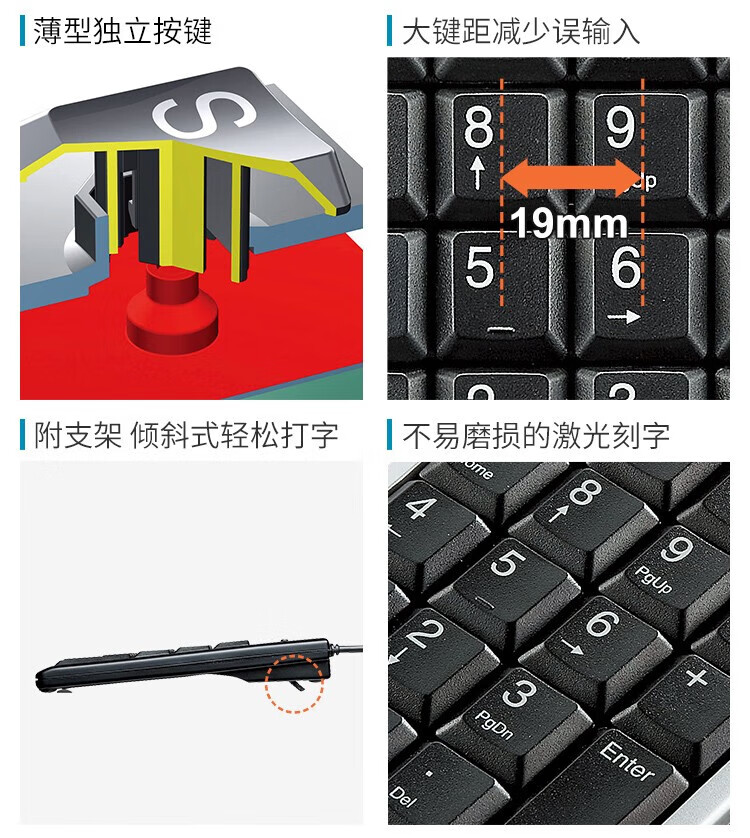 键距达19mm,大幅减少误触概率,提升输入精准度。