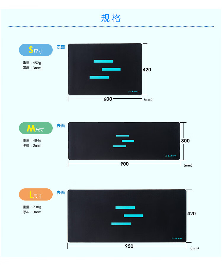SANWA SUPPLY(山业)桌垫 方款 小型 600×420mmGMPD1S