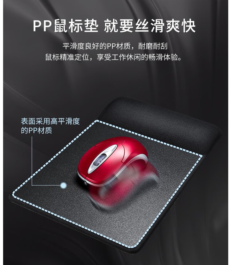鼠标操作区域采用高平滑度PP材质,确保光学、激光及蓝光鼠标均能精准定位,实现丝滑顺畅的操控体验。