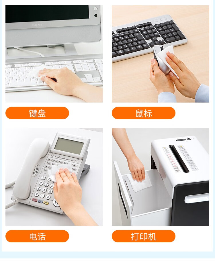 每片湿巾均经过防静电处理,有效防止静电吸附灰尘,适合频繁使用的办公设备。