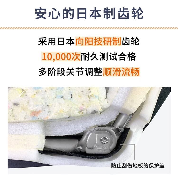 采用日本向阳技研制齿轮,经过10,000次耐久测试,保证调节顺滑流畅且耐用。