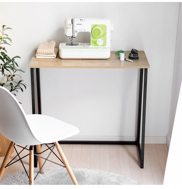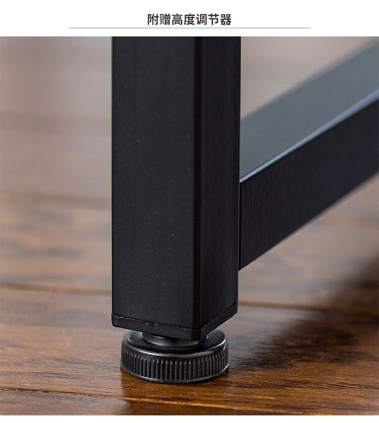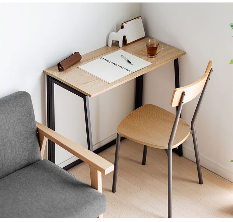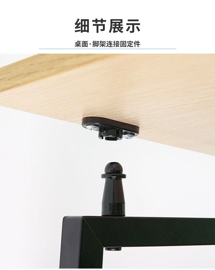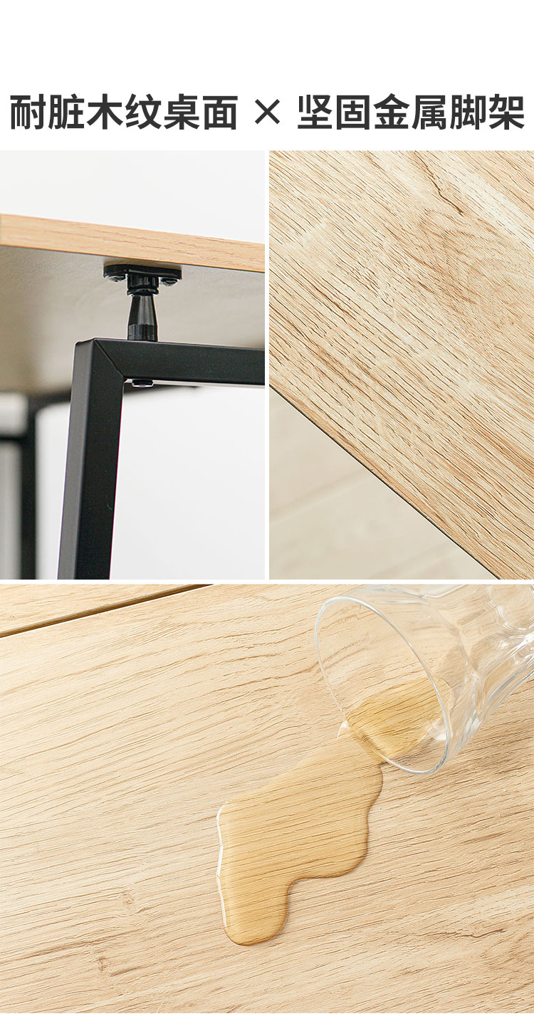 产品设计简约现代,黑色金属框架与浅色木纹桌面搭配协调,适用于多种家居风格,兼具实用性与美观性。