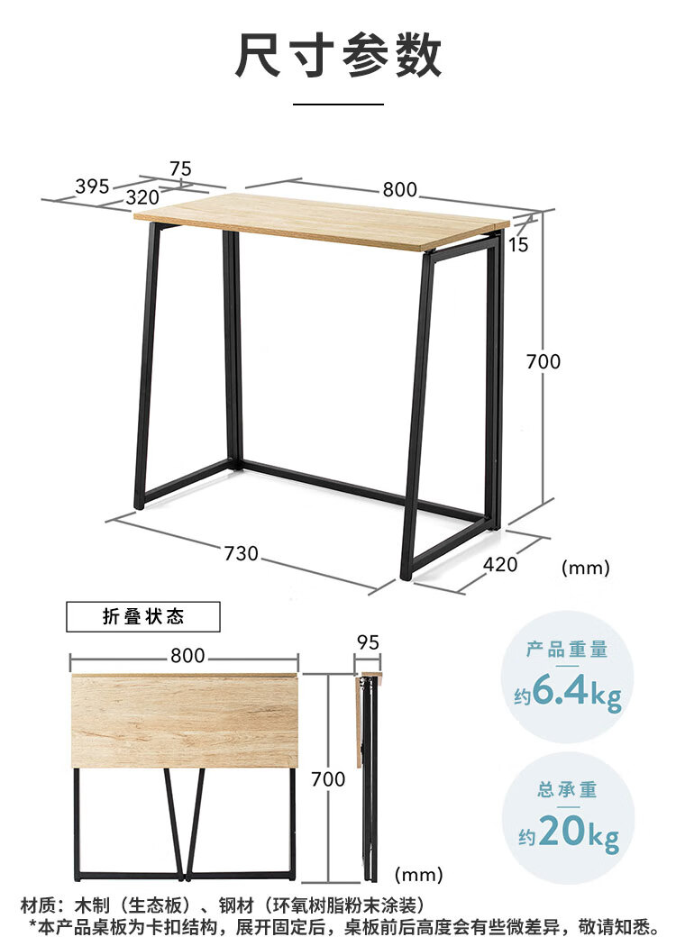 1 本产品为卡扣结构设计,展开固定后桌面前后可能存在轻微高度差异,属正常现象,请在使用前确认桌面平稳。