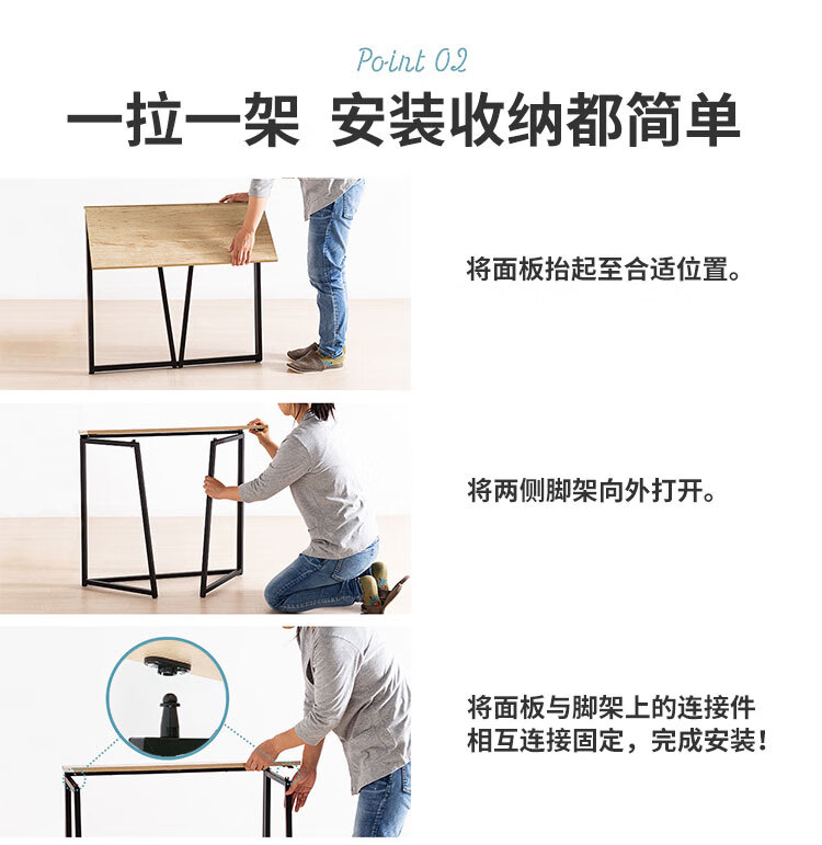 5 折叠收纳时注意地面平整,避免磕碰桌腿或桌面边缘造成划伤。