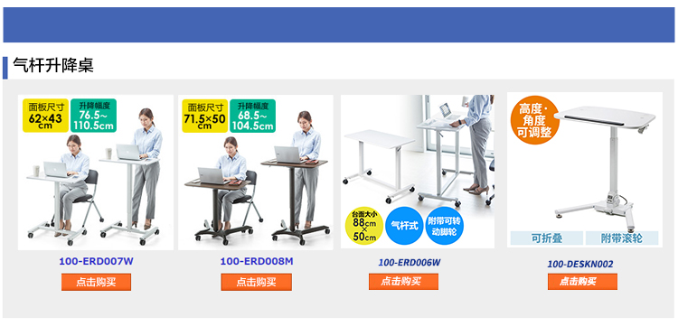SANWA SUPPLY(山业)升降移动电脑桌 0.715米宽 气杆式100-ERD008M